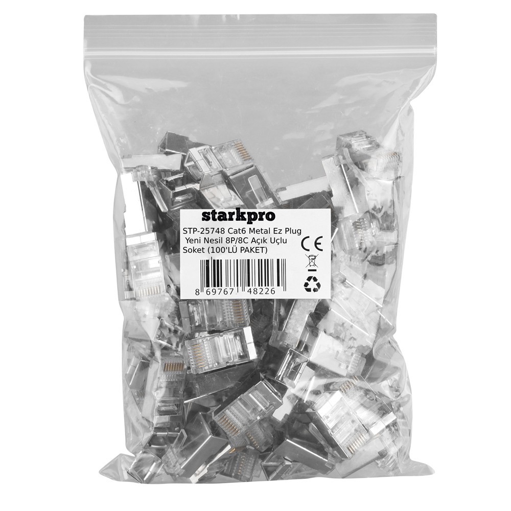 CAT6 Metal EZ Plug Yeni Nesil 8P/8C Açık Uçlu Soket, yüksek performanslı ve güvenilir bağlantılar için tasarlanmış bir üründür. Bu soketler, özellikle ağ altyapılarında üstün veri iletimi sağlamak için geliştirilmiştir. CAT6 standardını destekleyerek, hızlı ve güvenli ağ bağlantıları sunar. Metal yapısı sayesinde dayanıklılık ve uzun ömür sağlar. EZ Plug tasarımı ile kolay ve hızlı montaj imkanı sunar. 100’lük paket halinde sunulan bu soketler, büyük ölçekli projeler ve profesyonel kurulumlar için ideal bir çözümdür.